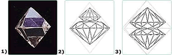 Ein gut geschliffener Diamant verliert mehr an Gewicht vom Rohdiamanten als tief- oder flach geschliffene Diamanten. Wie unten gezeigt.